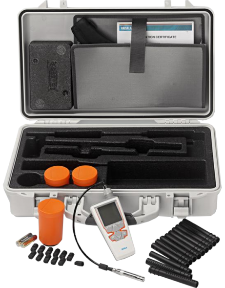 O kit inclui um medidor de umidade com uma sonda para medição rápida e não destrutiva da umidade no concreto. A sonda é inserida no concreto pré-misturado e mede instantaneamente o teor de umidade. Isso nos permite monitorar de perto o processo de cura, identificar possíveis problemas e tomar medidas corretivas para garantir que a umidade seja controlada adequadamente. O kit Vaisala SHM40 da HOMIS oferece uma visão clara de como a umidade se comporta no concreto ao longo do tempo, para que você possa fazer os ajustes necessários para garantir a qualidade e durabilidade de sua estrutura. Além disso, o kit é fácil de usar e oferece resultados precisos rapidamente, agilizando o processo de monitoramento.