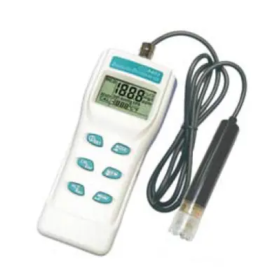- Grande display LCD que mostra valores de oxigênio dissolvido e de temperatura